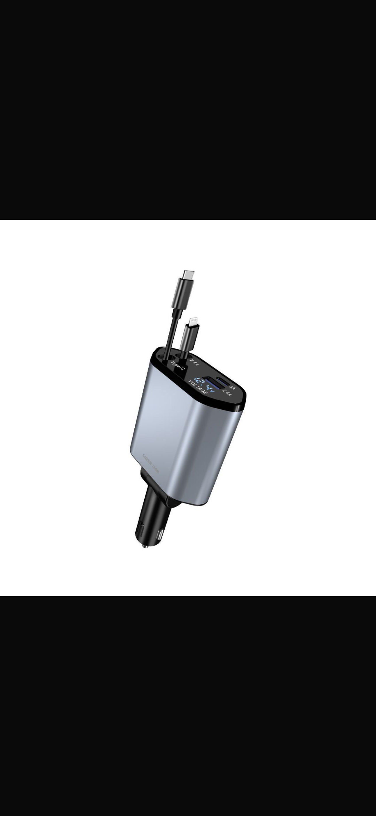 شاحن سياره للهاتف المتحرك مع كابل شحن مدمج وكابل قابل للطي ومخرجين قابل للشحن الاضافي وشاشة رقمية وميزة توجيه شاحن راوتر 180 درج