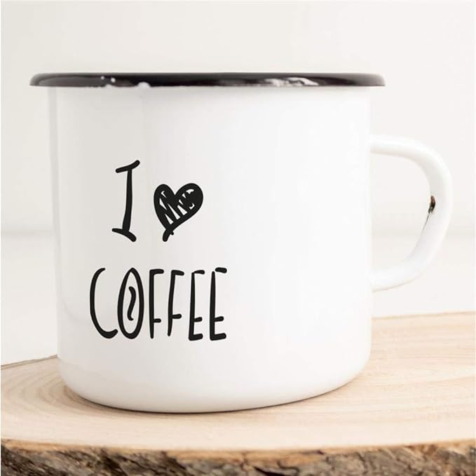 - كوب مطلي بالمينا باللون الأبيض مع حافة كوب سوداء مرسومة يدويًا، أخف وزنًا وأكثر قوة من أدوات المائدة المصنوعة من البورسلين أو السيراميك