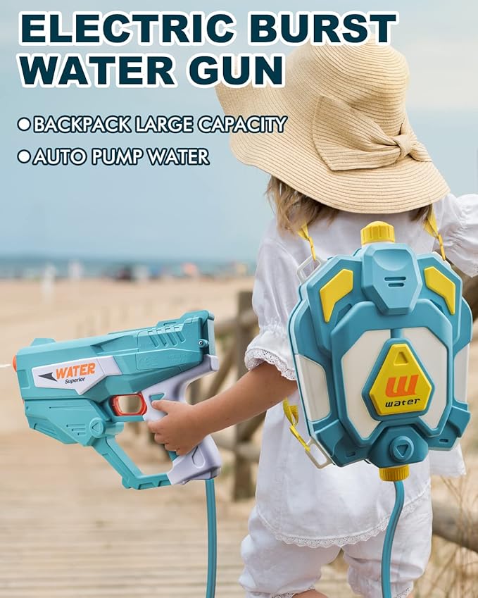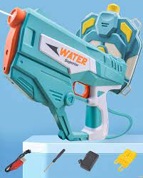 - 【مسدس مياه كهربائي أوتوماتيكي】 التصوير بلمسة واحدة، لا مزيد من متاعب الضغط اليدوي بالنسبة لك. في هذا الموسم المثير، استمتع بمعركة مثيرة باستخدام مسدسات المياه مع أصدقائك أو أطفالك!