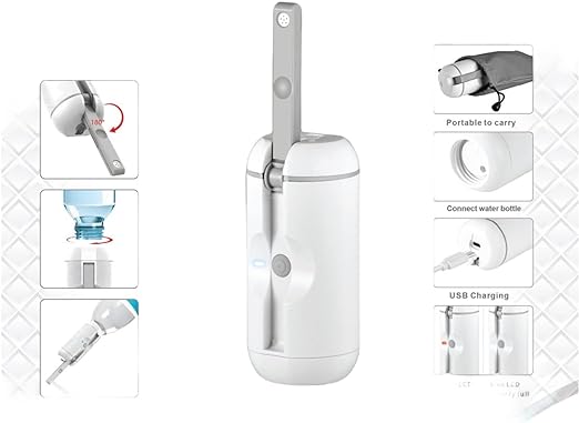 - يحتوي على سرعتين للتحكم في معدل التدفق. عملية لمسة واحدة. مرحاض عام، نقرة واحدة: تدفق لطيف، رعاية مخصصة للسفر، نقرة مزدوجة: قوي. مرحاض مدمج قابل للشحن.