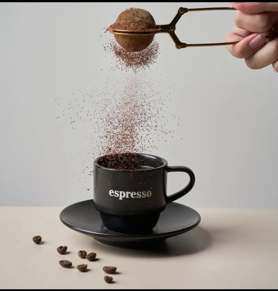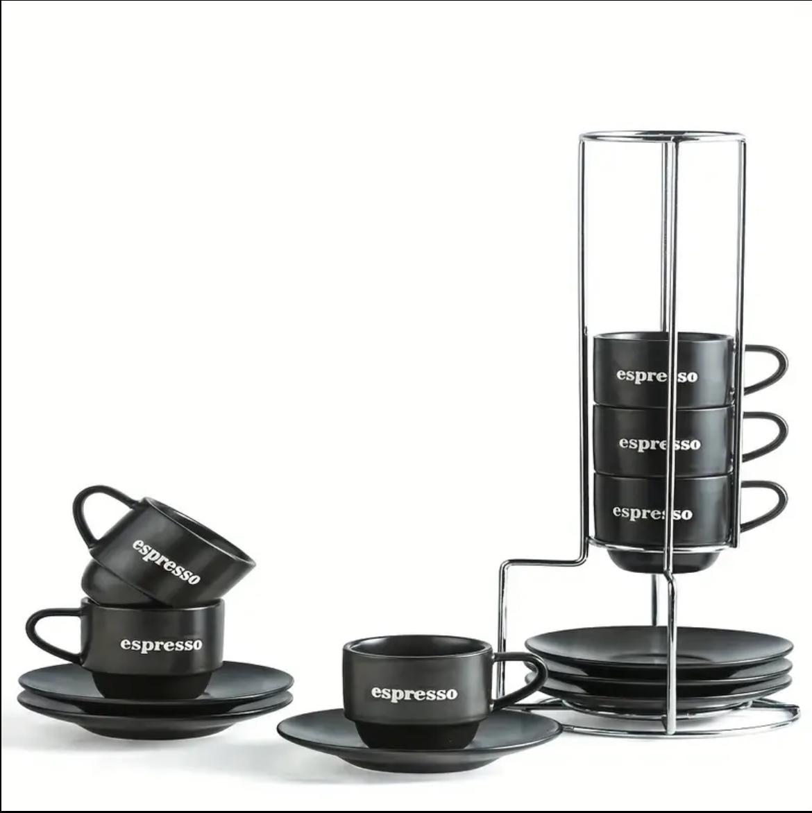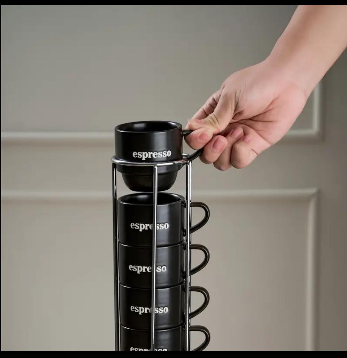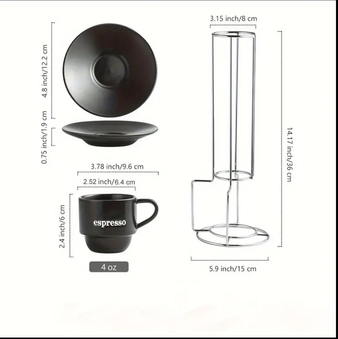 طقم أكواب إسبريسو مع صحون، طقم أكواب قهوة بورسلين وحامل معدني، كوب ديميتاس قابل للتكديس بوزن 118 مل لللاتيه، مقهى موكا، فناجين شاي، مجموعة مكونة من 6 قطع