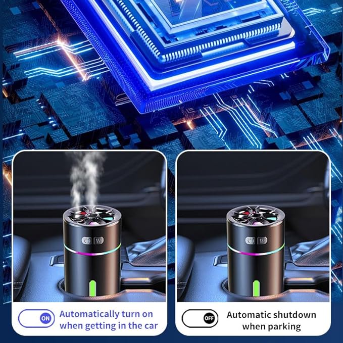 - MULTIPLE MODES The Bakhory Smart Car Air Freshener Diffuser offers a variety of functions, such as 2 spray humidification modes - continuous and intermittent, and 3 scent modes - smart scent, light scent and strong scent, so you can adjust the intensity of the scent according to your preference. In addition, it also features start/stop function with the car. The diverse functions make your experience more comfortable and enjoyable, and provide you with more choices.