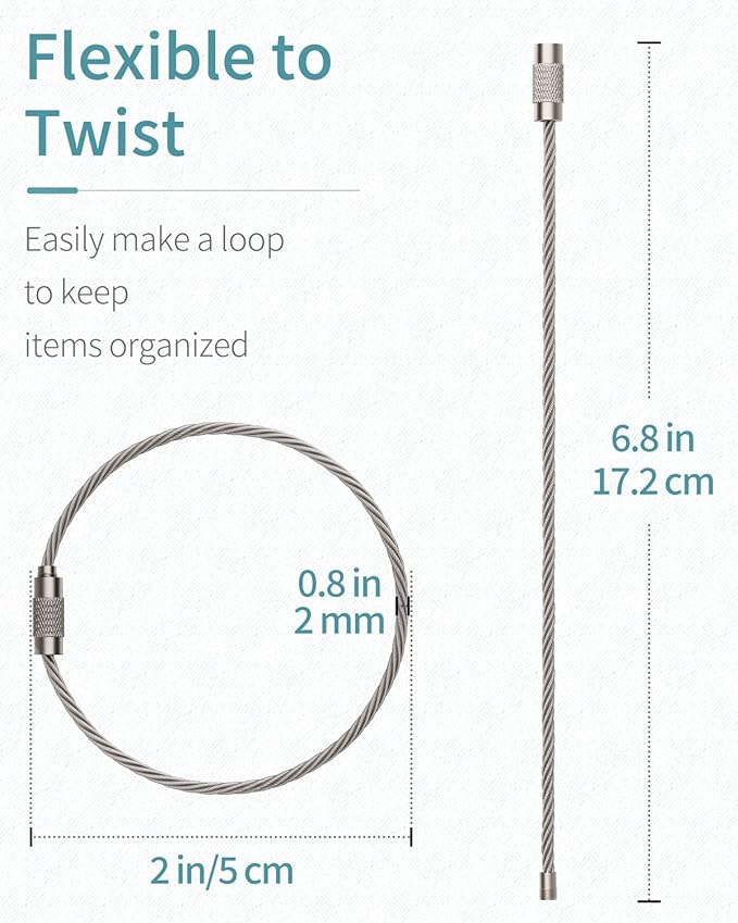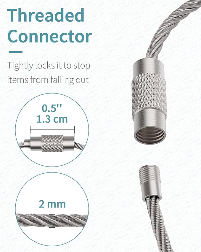 - What You Get: 6 inches Silver Stainless steel wire keychain cable.